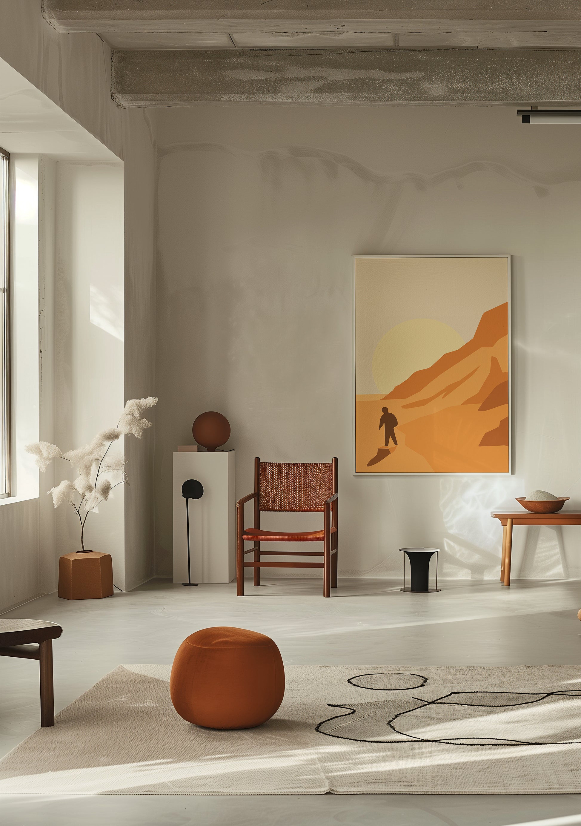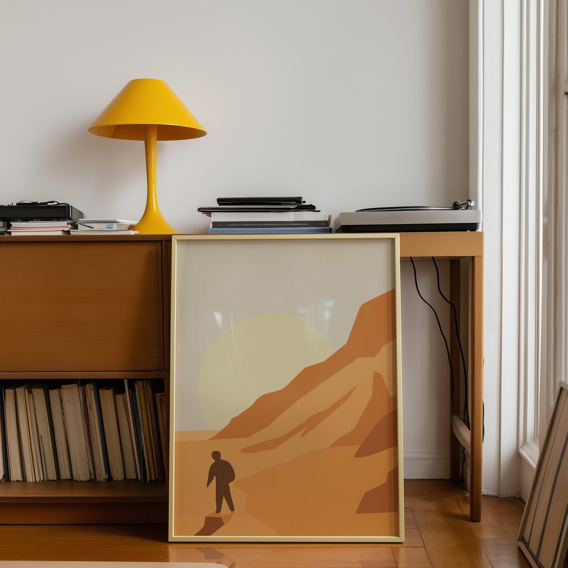 Warm light and endless dunes meet minimalist form. Moroccan Sunset captures the peaceful glow of desert evenings through soft gradients, grounded shapes, and a balanced composition that feels both calm and dreamlike.