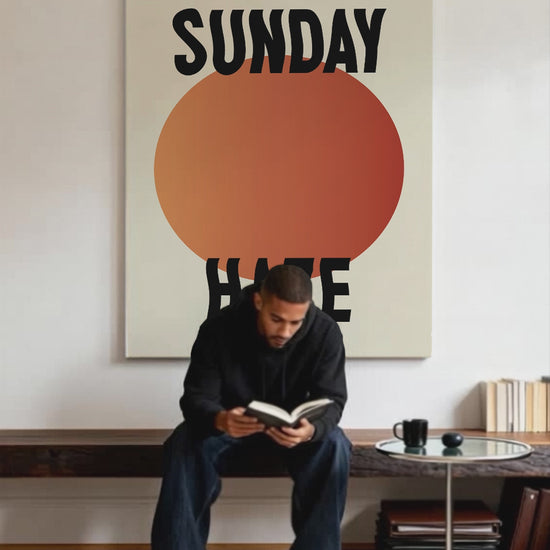 With a bold sun-like gradient and clean typography, it adds a soft glow to any space and pairs perfectly with neutral interiors or colorful walls.